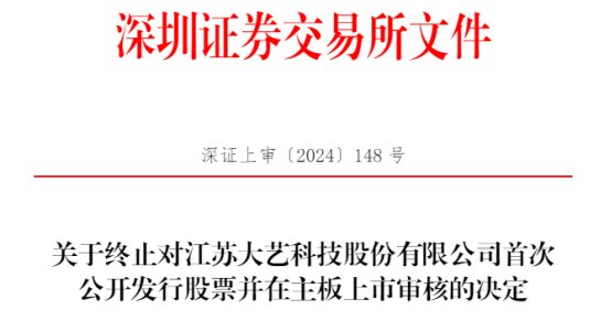 深交所于2023年3月2日照章受理了大艺科技初次公开荒行股票并在主板上市的苦求文献,并照章依规进行了审核。日前,大艺科技向深交所提交了《江苏大艺科技股份有限公司对于除掉初次公开荒行股票并在主板上市苦求文献的苦求》,保荐东说念主向深交所提交了《中信建投证券股份有限公司对于除掉江苏大艺科技股份有限公司初次公开荒行股票并在主板上市苦求文献的苦求》。阐明《深圳证券交游所股票刊行上市审核章程(2024年创新)》第六十二条的相关章程,深交所决定拆开对大艺科技初次公开荒行股票并在主板上市的审核。