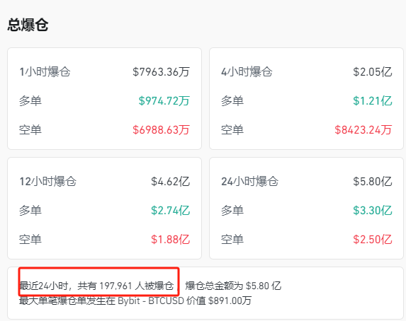 Coinglass袒露,最近24小时内,编造货币有近20万东说念主爆仓。