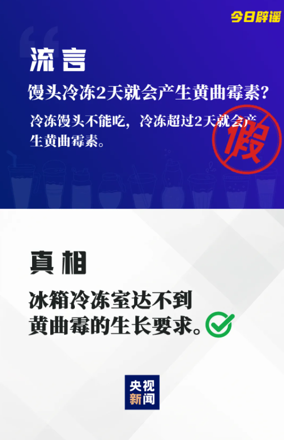 黄曲霉素需要在湿度80%至90%、温度25℃至30℃的条目下产生,雪柜冷冻层产生黄曲霉素的可能性很低。只有馒头在放入雪柜前未受混浊,且雪柜内亦然干净的,那么繁殖黄曲霉的可能性就很小。